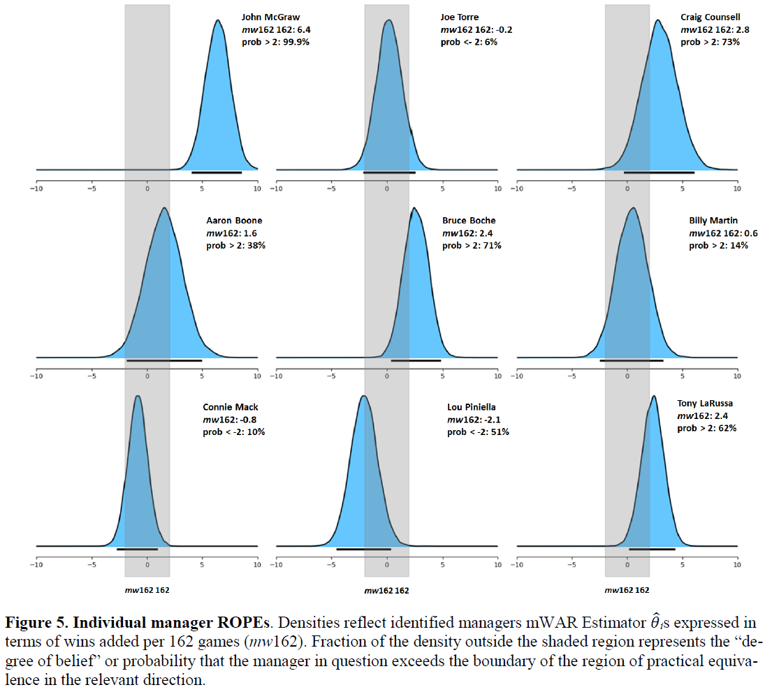 If you want to go out and get your team a “good” manager and avoid a “lemon” (or even a Bob Lemon—mw162 = 0.1), you have to face some uncertainty. There are a few bona fide great managers out there (very few) and a few bona fide boners. But you know there are rich, unexplored veins of talent—and ineptitude—around the +2 and -2 thresholds. And you can’t wait 1000 games to try to figure all this out.