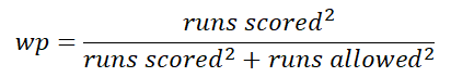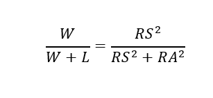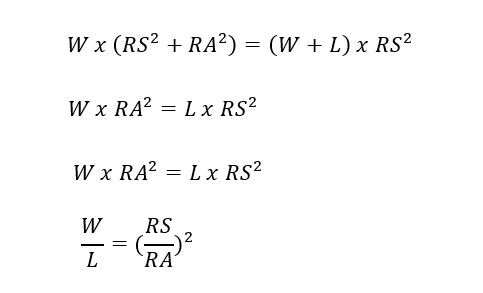 Anyway, substitute “RS” for runs score and “RA” for runs allowed, and unpack “win pct”: